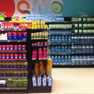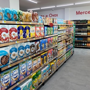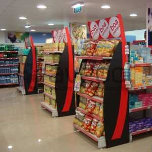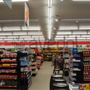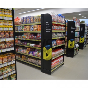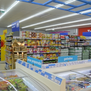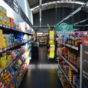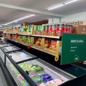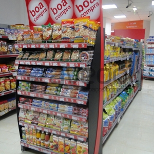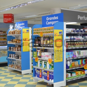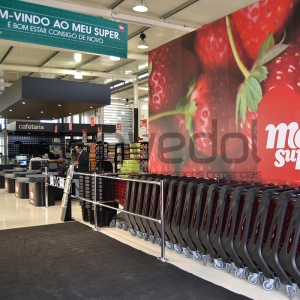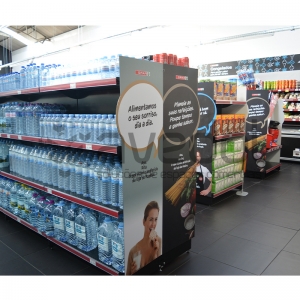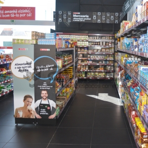 - Banners para identificação da tipologia de produtos e marcas nas estantes e corredores