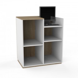 Balcão modular produzido em madeira laminada para lojas e estabelecimentos comerciais.