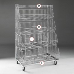 | (A) Cesta | (B) Cesta Superior | (C) Divisória | (D) Base com rodas |