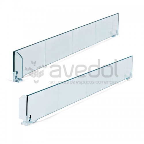 Pack 2 divisórias com batente esquerdo e direito. Adequadas para organizar as embalagens e produtos nas prateleiras.