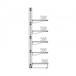 Murais compostos por componentes standard: prumos, pés, prateleiras da base e superiores, forros lisos e perfurados.