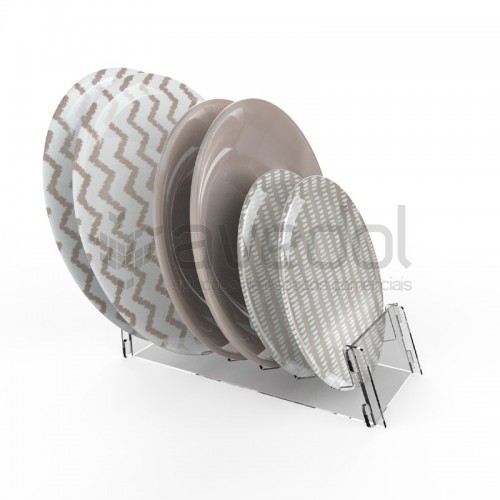 Expositor suporte para 6 pratos, produzido em acrílico.
