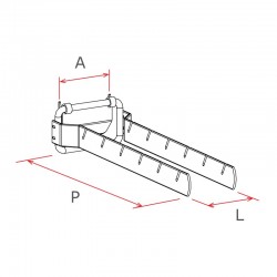 Gancho horizontal com 6 rasgos adequado para expor e comercializar ferramentas de construção e agricultura.