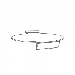 Prateleira oval com aba para etiqueta, compatível com sistemas multi-painel.