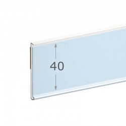 Perfil porta-preço com adesivo para identificar produtos e preços em prateleiras de chapa e madeira.