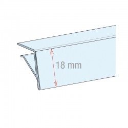 Perfil porta-preço com encaixe compatível com prateleiras com espessura de 3 a 8 mm.