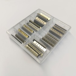 Caixa com peças numéricas para construir preços "tipo lego".