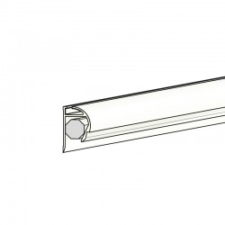 Perfil semi-circular com adesivos e cilindros para "bloquear" a bolsa display.