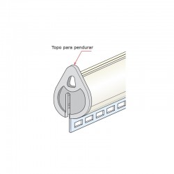Perfil com topos e perfil transparente para inserir bolsa display com furos.