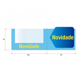 Display stoppper com impressão "Novidade" para inserir em perfis porta-preço.